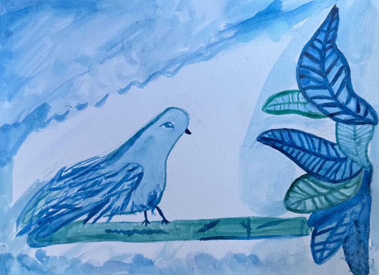 As they continue their study of color theory, students have now begun an exciting new project: a monochromatic watercolor painting, where an entire piece is created using varying shades of a single color.